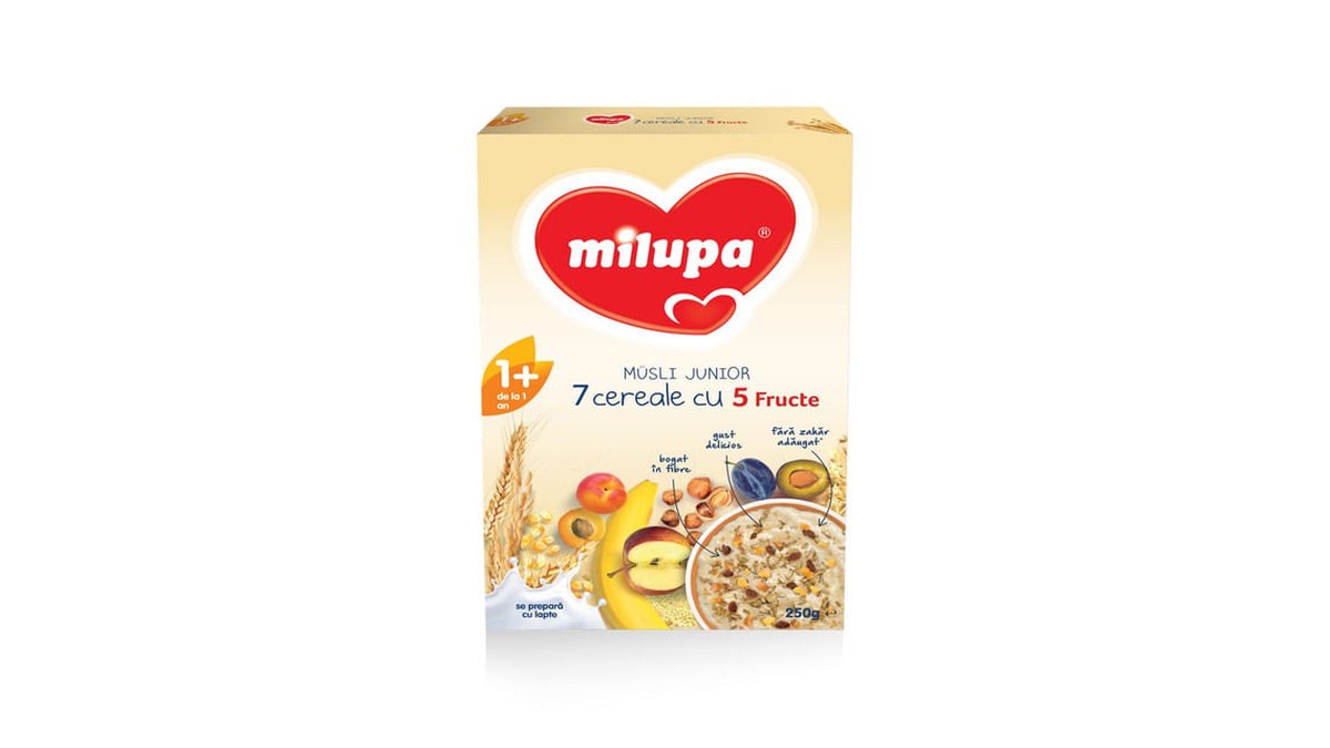 Cereale Milupa Musli Junior 7 cereale cu 5 fructe, de la 1 an, 250 g