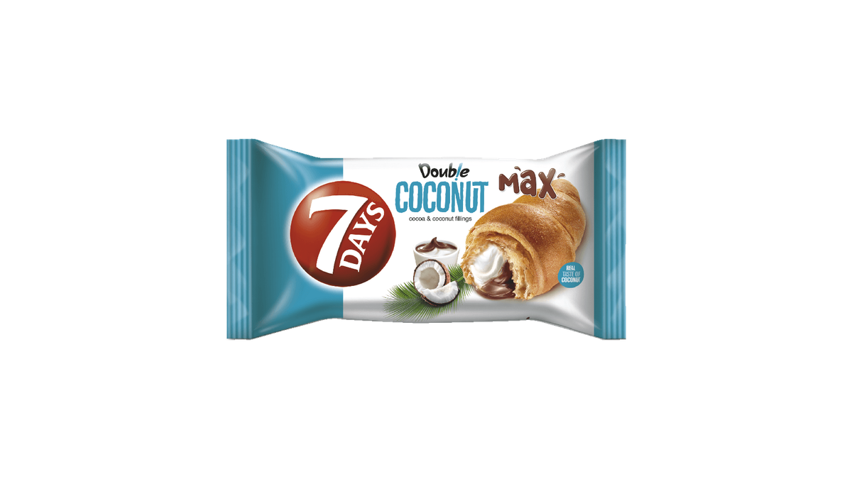 Croissant dublu cu umplutura de cacao si nuca de cocos 7 Days, 80 g