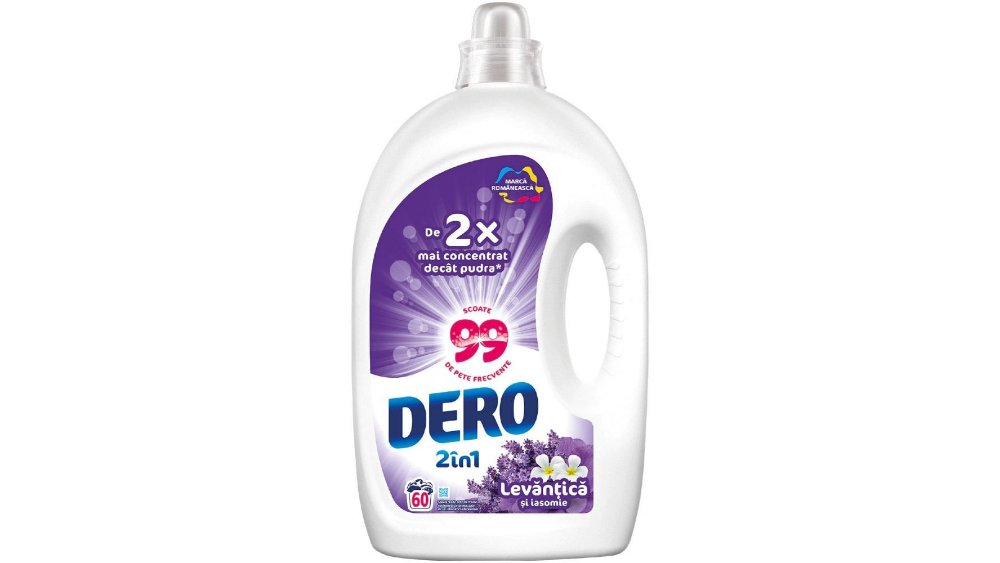 Detergent lichid de rufe automat cu levantica si Iasomie Dero 2in1, 60 spalari 3 l