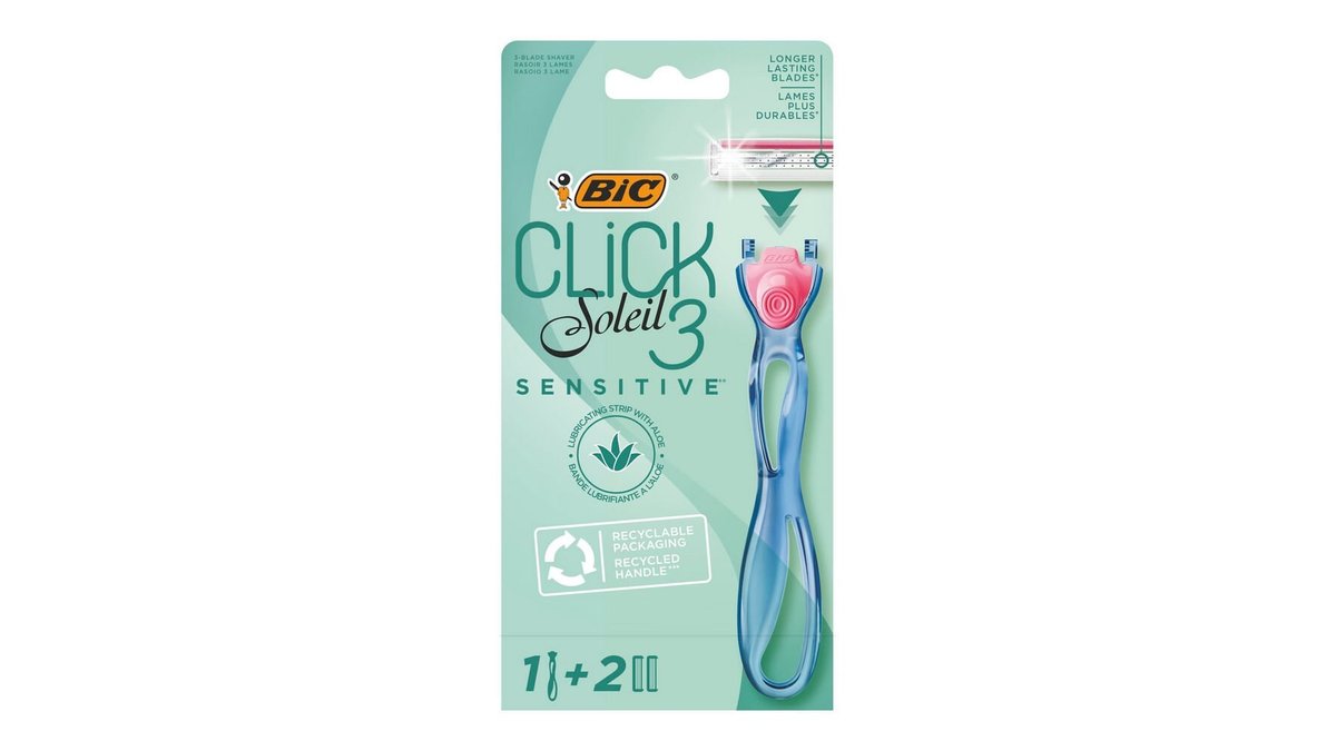 Aparat de ras reincarcabil hibrid pentru femei BIC Soleil Clic Sensitive B2, cu 3 lame