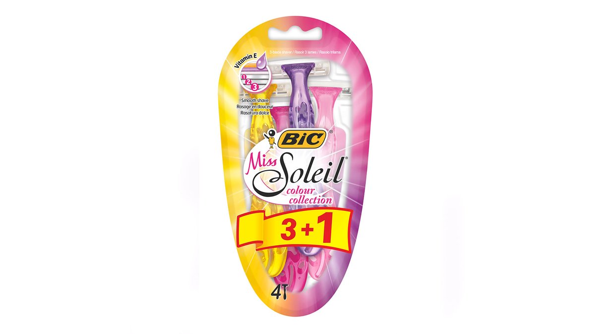 Aparat de ras dispozabil pentru femei BIC Miss Soleil Sensitive cu 3 lame, set 4 bucati