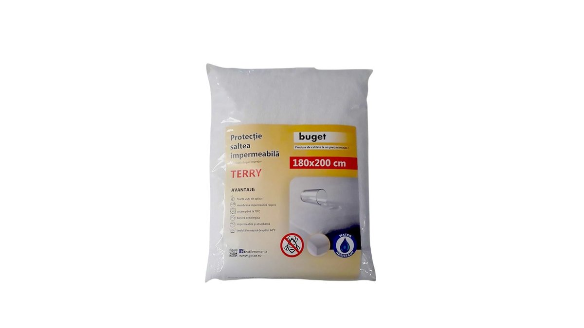 Protectie saltea impermeabila Gecor, 180 x 200cm, model Terry Buget