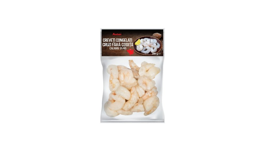 Creveti fara codita congelati Auchan, calibru 31/40, 350 g
