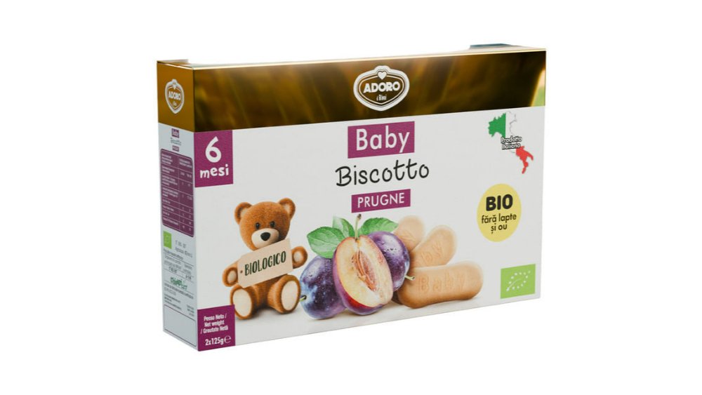 Biscuiti bio cu pruna si cereale Adoro, de la 6 luni, 2 x 125 g