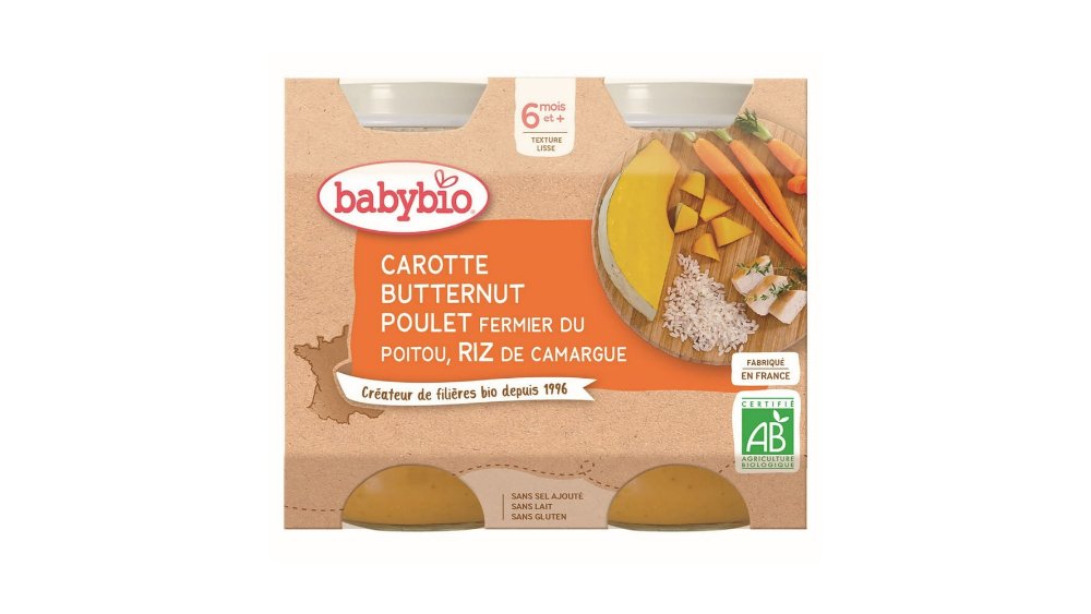 Piure de morcovi, dovleac, pui si orez Babybio, de la 6 luni, 2 x 200 g