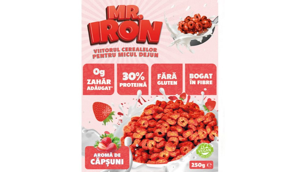 Cereale proteice cu aroma de capsuni Mister Iron, 250 g