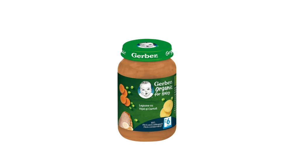 Piure cu legume, vitel si cartofi Gerber Bio, de la 6 luni, 190 g