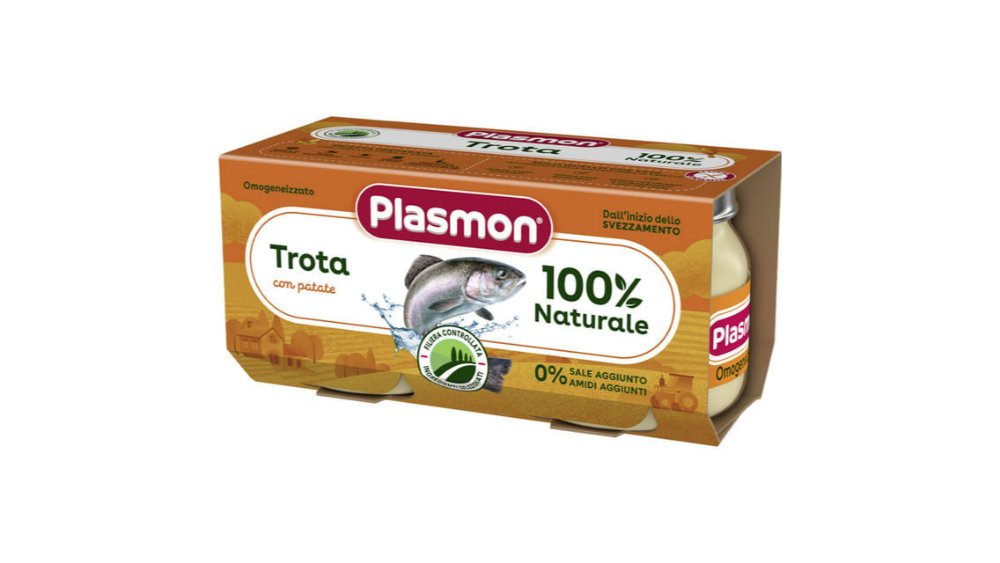 Piure Pastrav cu legume Plasmon, de la 6 luni, 2 x 80 g