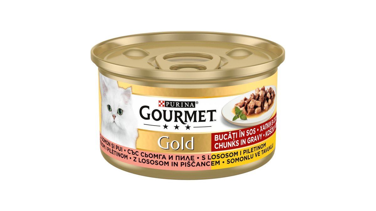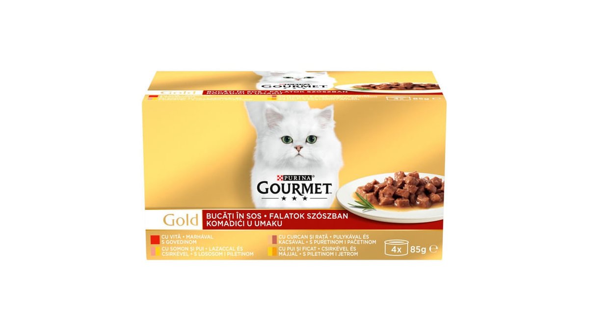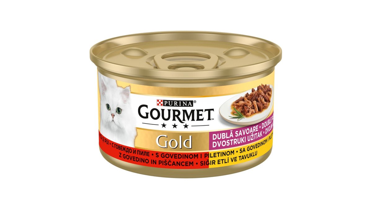 Hrana umeda pentru pisici Purina Gourmet Gold Double Pleasure cu vita si pui in sos, 85 g