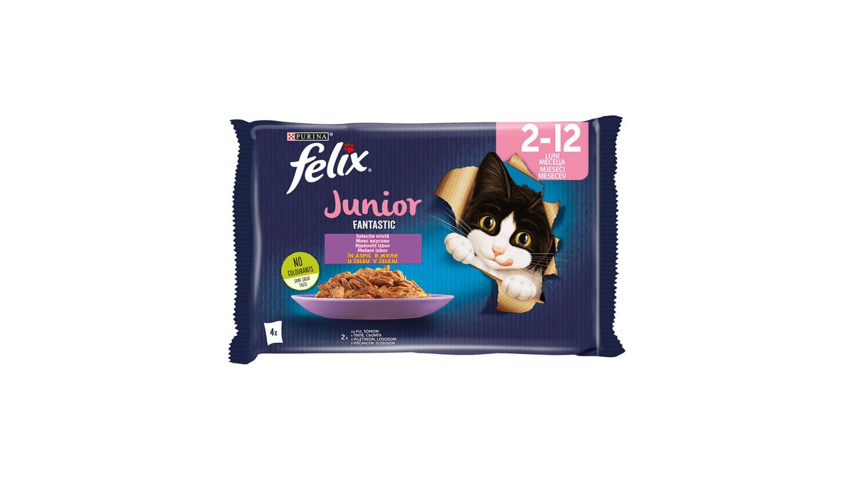 Hrana umeda pentru pisici Purina Felix Fantastic Junior multipack, pui in aspic, 4 x 85 g