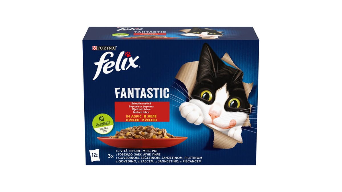 Hrana umeda pentru pisici Purina Felix Fantastic, pui, miel, iepure si vita in aspic, 12 x 85 g
