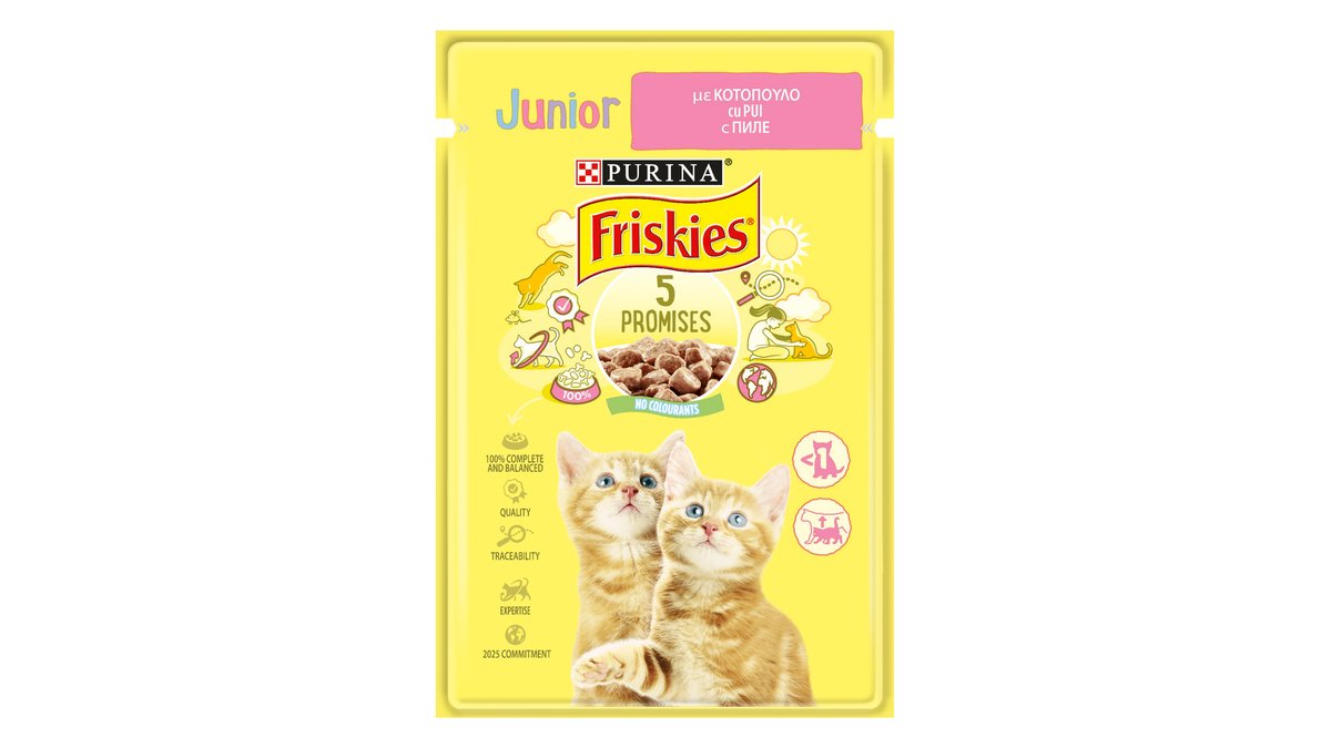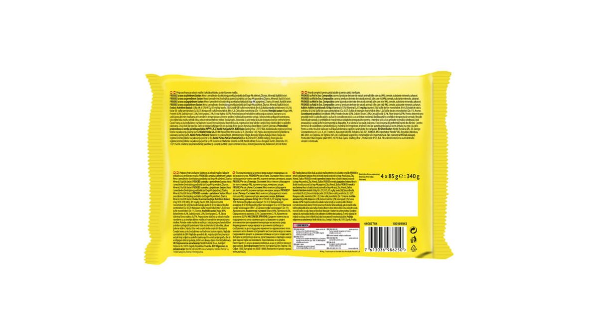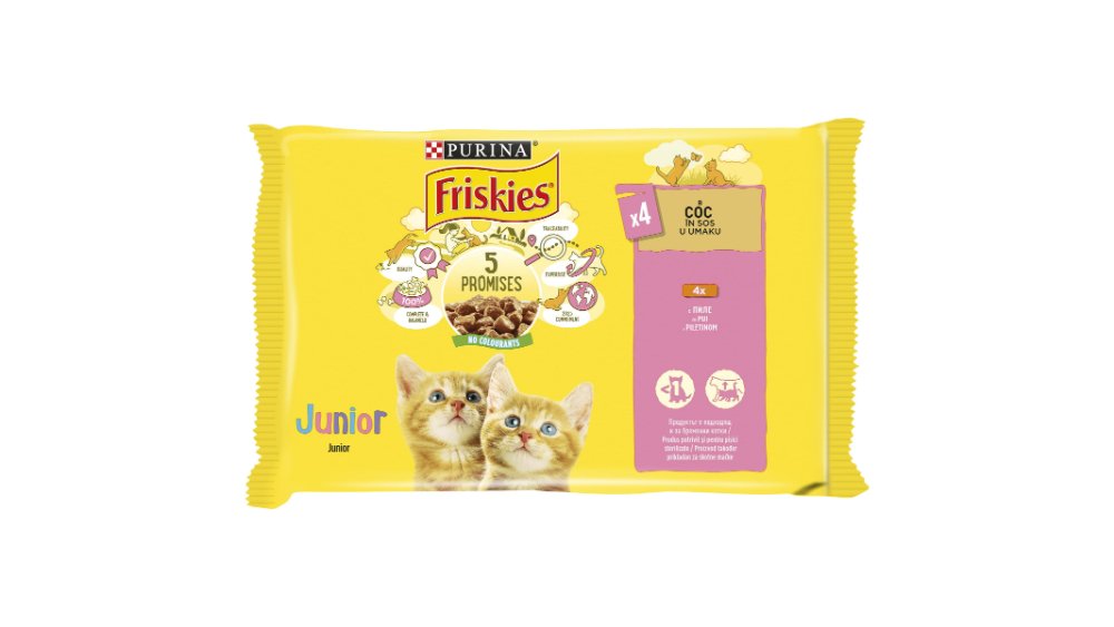 Hrana umeda pentru pisici adulte Purina Friskies, pui, vita, miel si rata in sos, 4 x 85 g