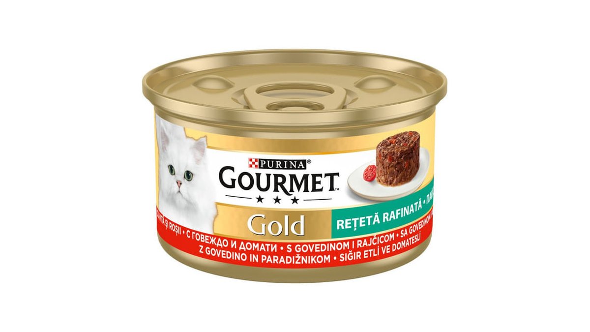 Hrana umeda pentru pisici Purina Gourmet Gold Savoury Cake cu vita si rosii, 85 g