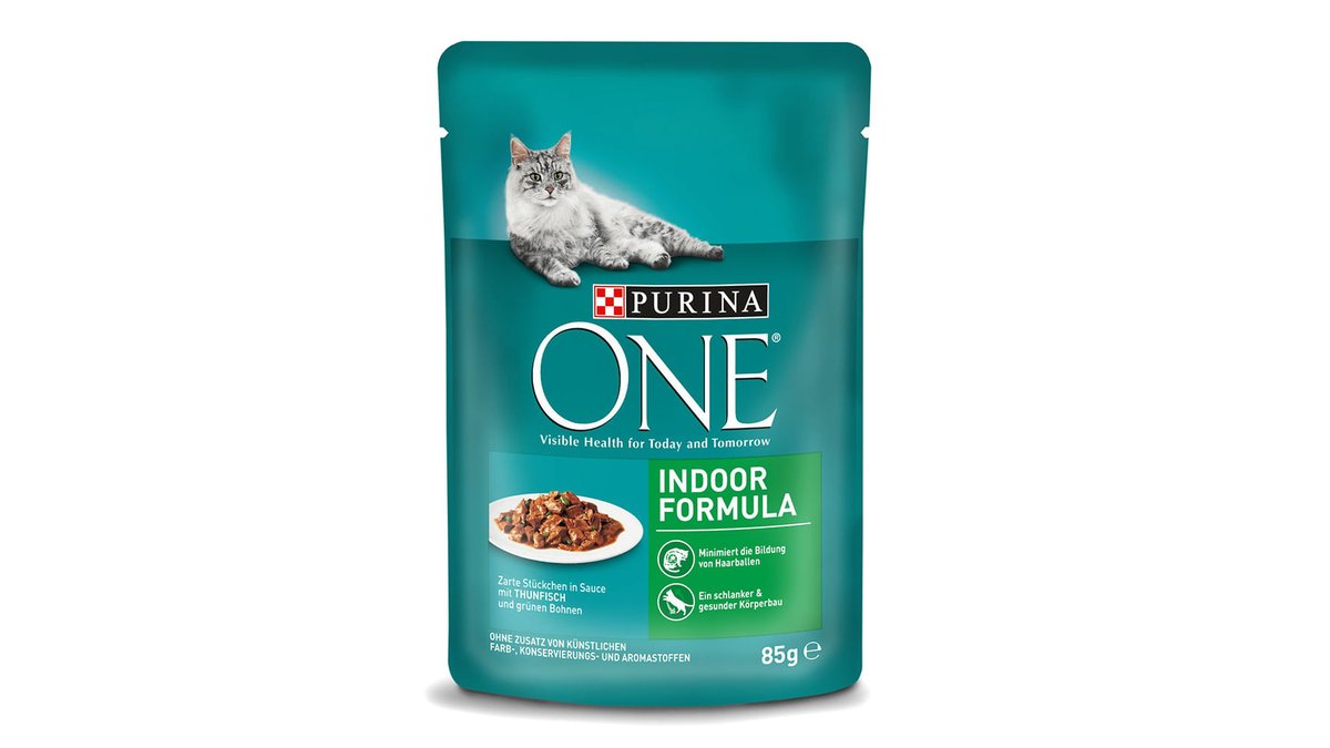 Hrana umeda pentru pisici Purina One Indoor Formula, file cu ton si fasole verde in sos, 85 g