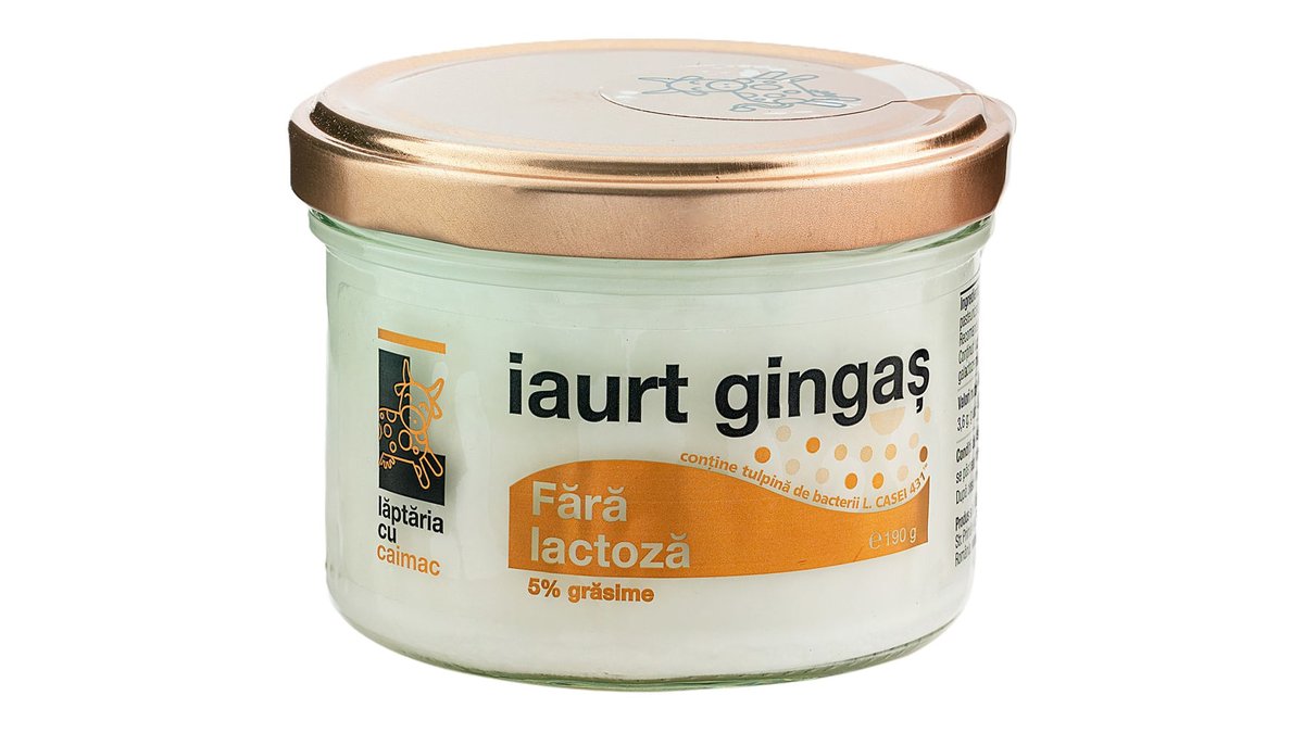 Iaurt gingas Laptaria cu caimac, 5% grasime, fara lactoza, 190 g