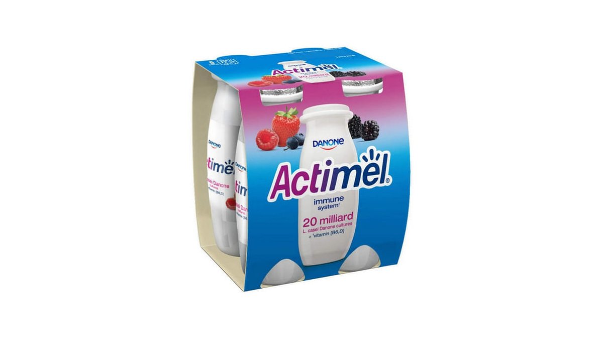 Iaurt de baut Actimel, cu fructe de padure, 4 x 100 g