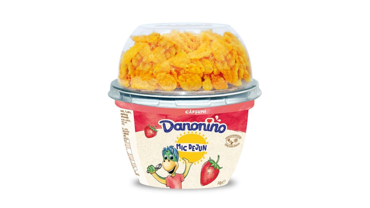 Iaurt cu capsuni si topping de cereale Danonino, 143 g