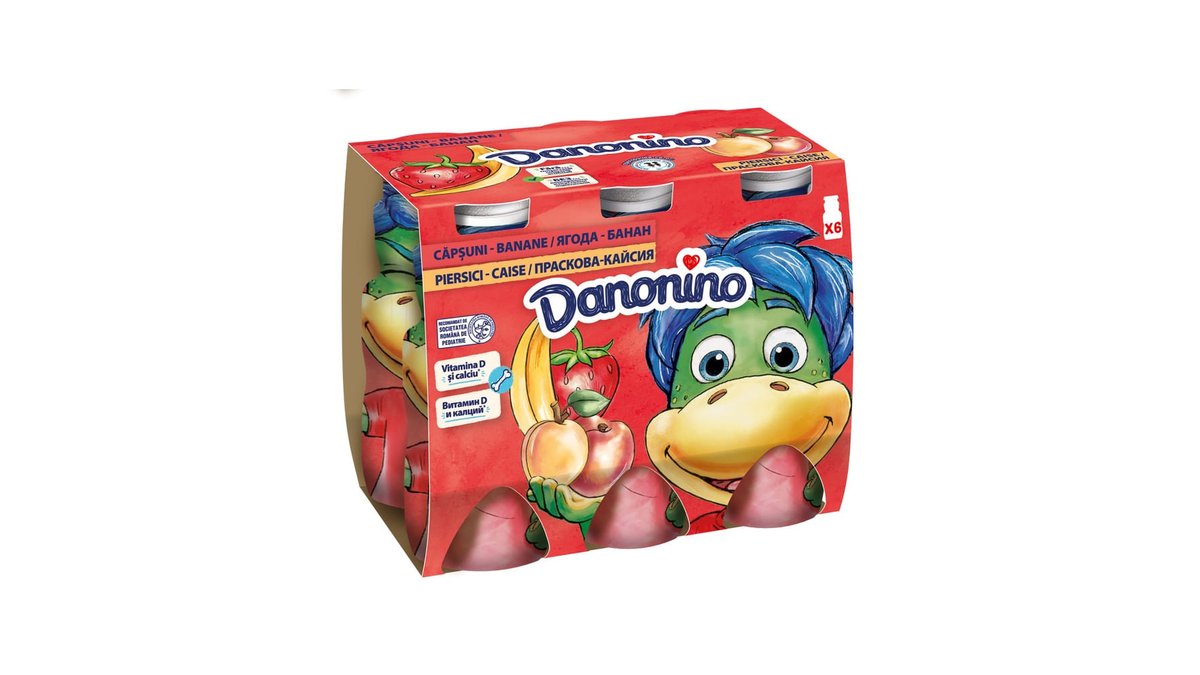 Iaurt de baut Danonino, capsuni-banane si piersici-caise, 6 x 100 g