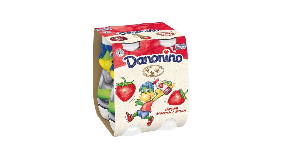 Iaurt de baut Danonino, cu piure de capsuni, 4 x 100 g