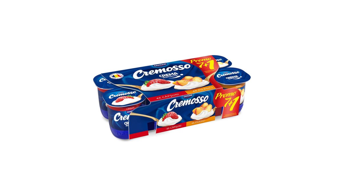 Iaurt cu piersici si capsuni Cremosso, 8 x 125 g
