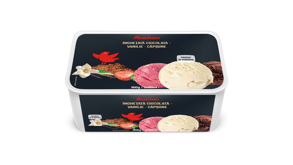 Inghetata cu vanilie, ciocolata si capsuni Auchan, 900 g