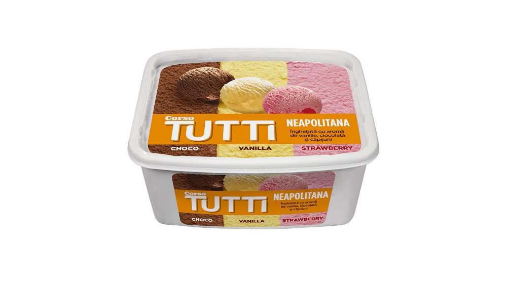 Inghetata cu aroma de vanilie, ciocolata si capsuni Corso, 2 l