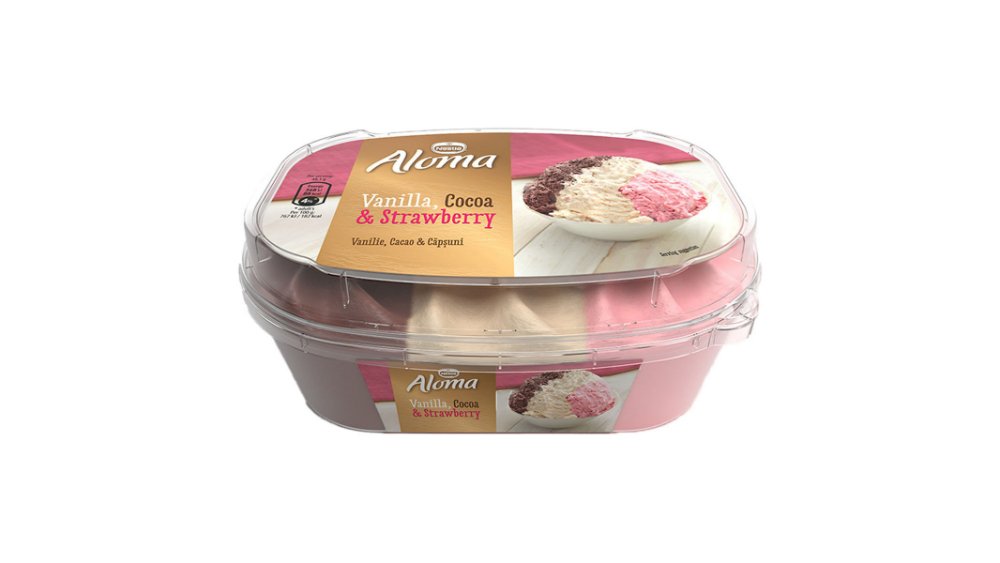 Inghetata cu vanilie, cacao si capsuni Aloma, 900 ml