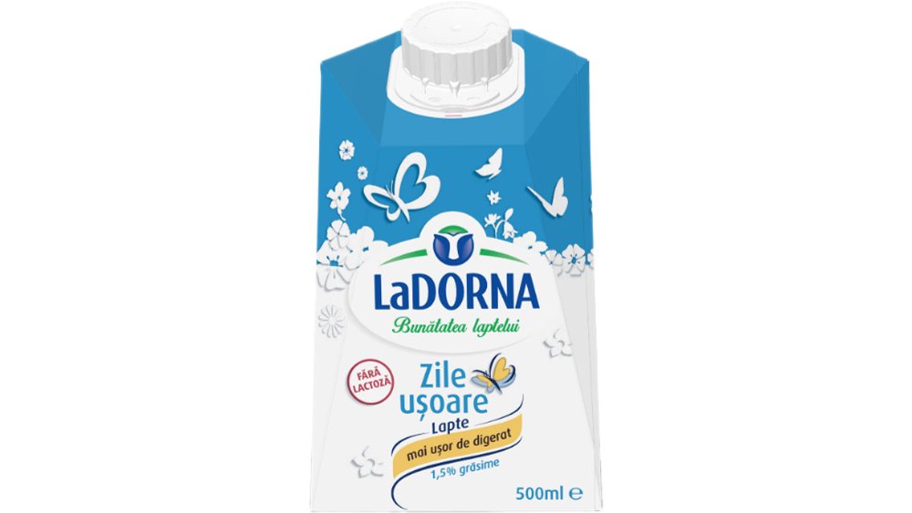 Lapte de consum semidegresat LaDorna Zile Usoare, fara lactoza, 1.5% grasime, 500 ml