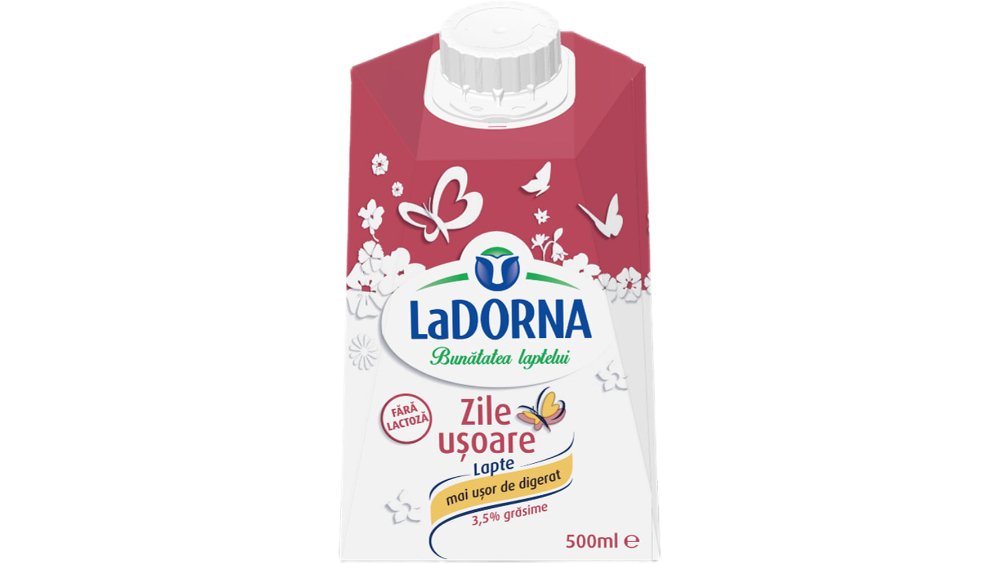 Lapte de consum integral LaDorna Zile Usoare, fara lactoza, 3.5% grasime, 500 ml