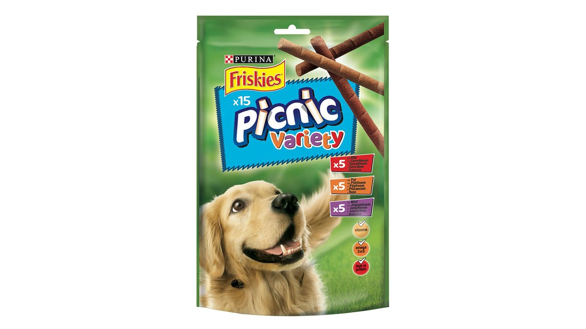 Recompense pentru caini Purina Friskies Picnic Variety cu pui, vita si miel, 126 g