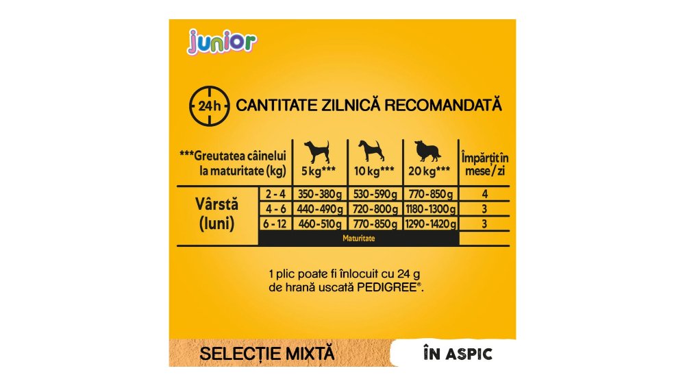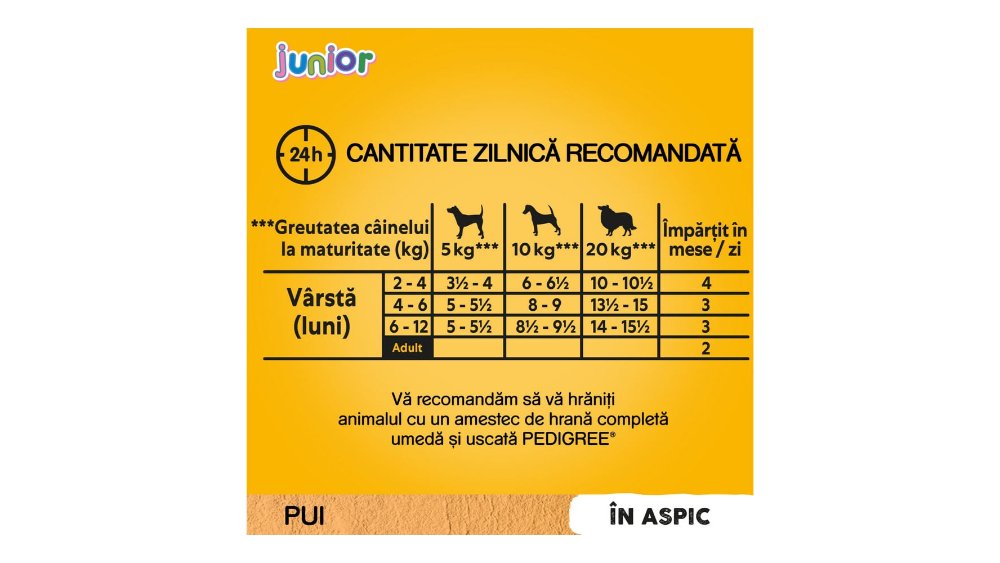 Hrana umeda la conserva pentru caini juniori Pedigree Junior, cu pui in aspic, 400 g
