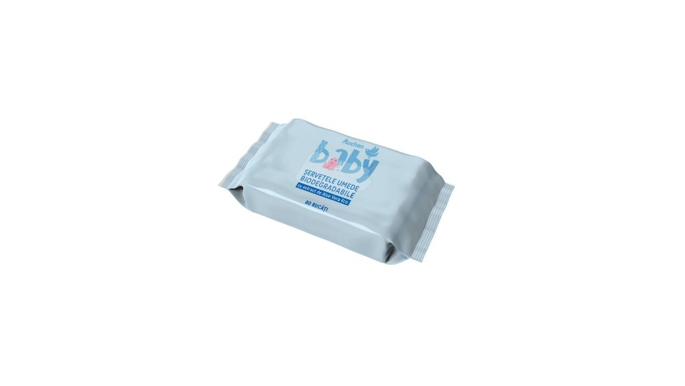 Servetele umede bebelusi Auchan cu aloe vera, biodegradabile, 80 bucati