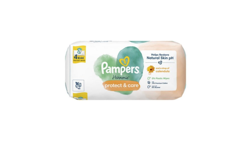 Servetele umede bebelusi Pampers Harmonie Protect & Care, cu galbenele, 4 pachete x 44, 176 bucati