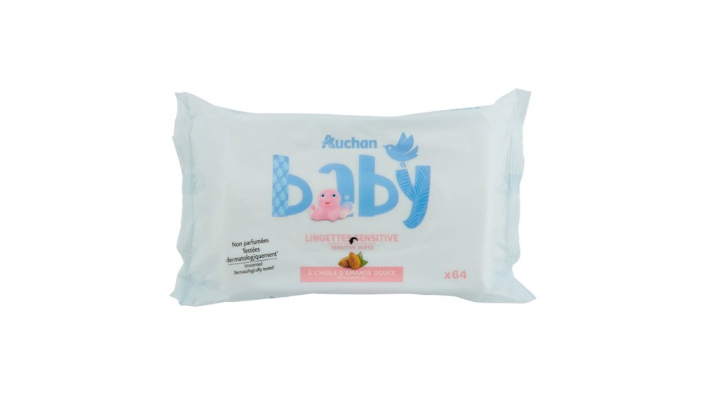 Servetele umede Auchan Baby Sensitive, 3 x 64 bucati