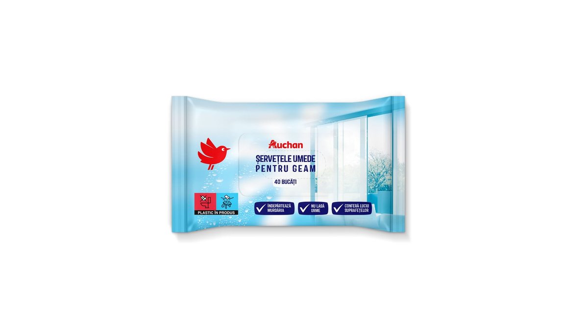 Servetele umede pentru geamuri Auchan, 40 bucati