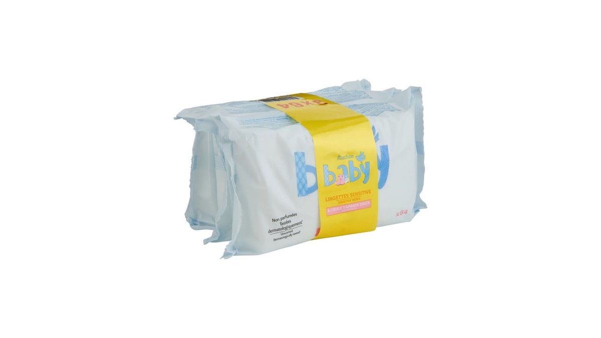 Servetele umede Auchan Baby Sensitive, 3 x 64 bucati