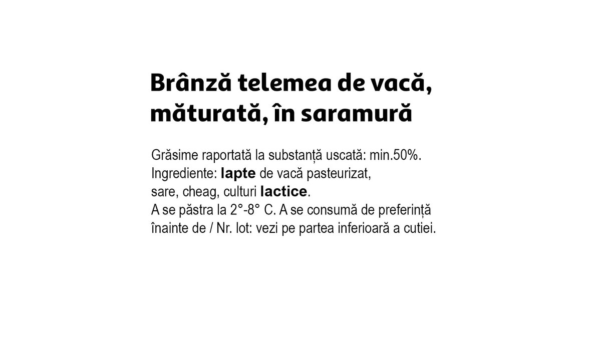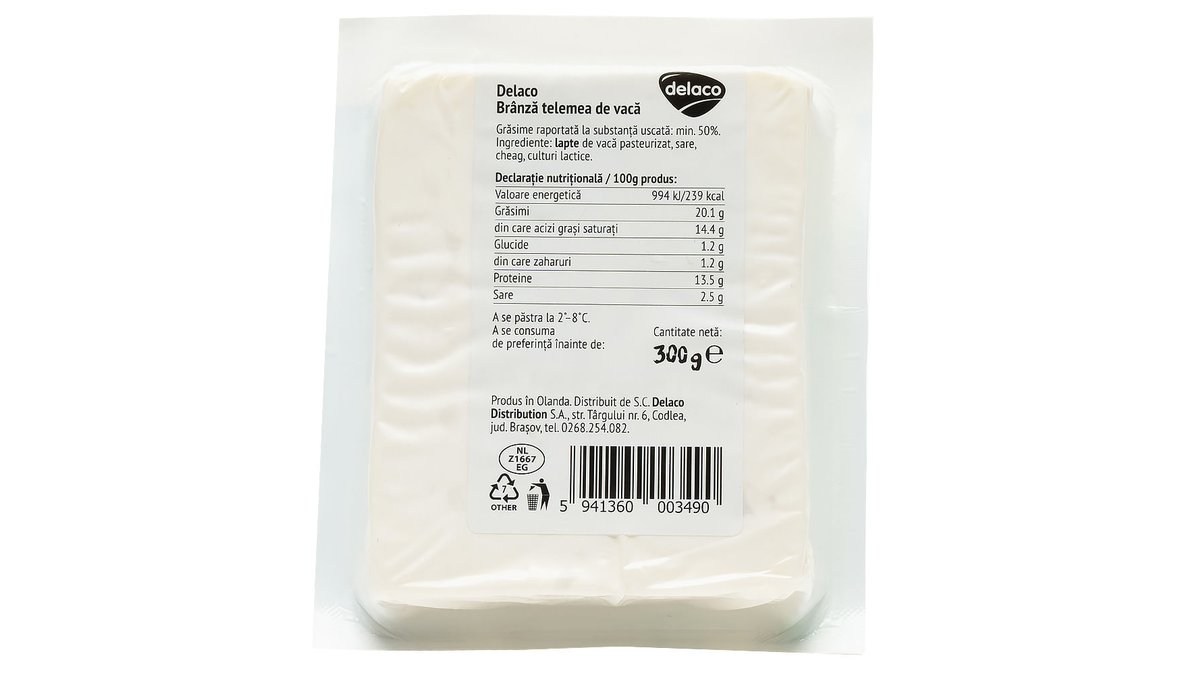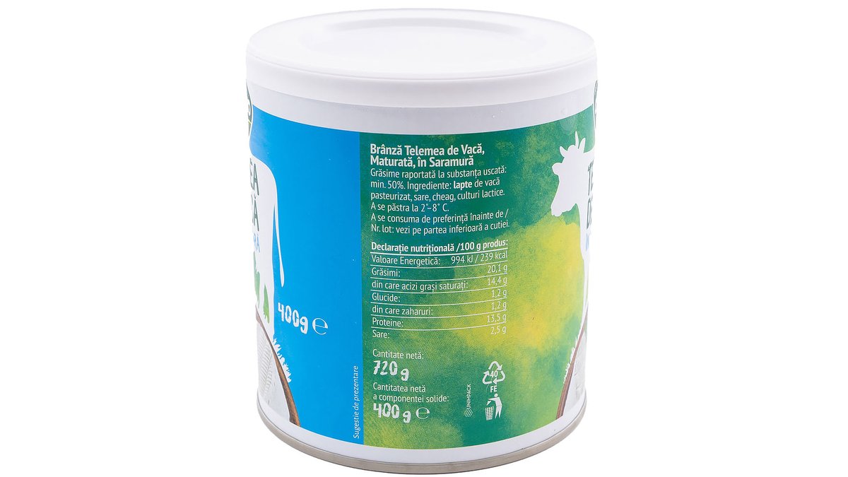 Telemea de vaca maturata in saramura Delaco, 800 g