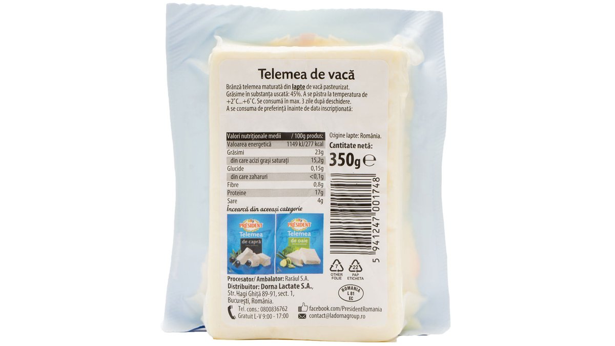 Telemea de vaca President, 350 g