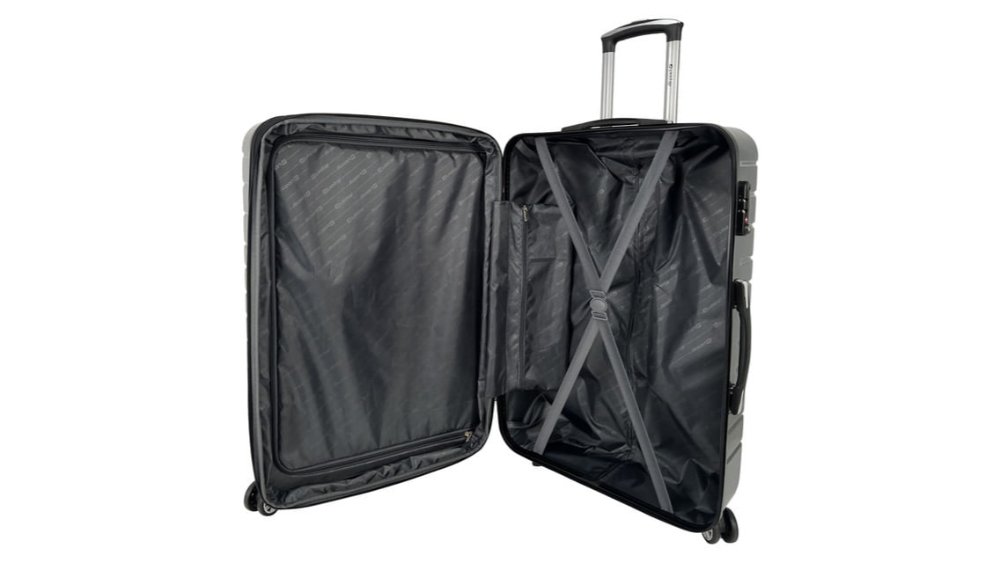 Troler Airport Wavy Pop cu 4 roti duble, 49 x 75 x 28 cm, marime L, culoare dark grey