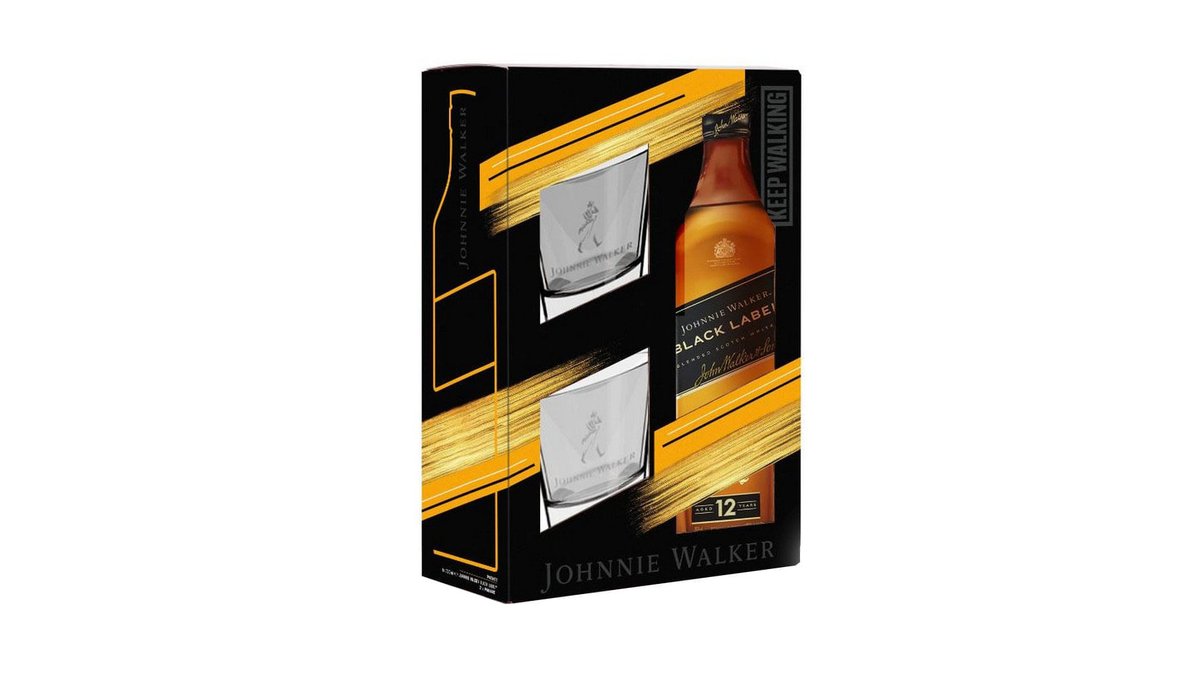 165,89 RONPachet whisky Johnnie Walker Black Label, 40% alcool, 0.7 l + 2 pahare