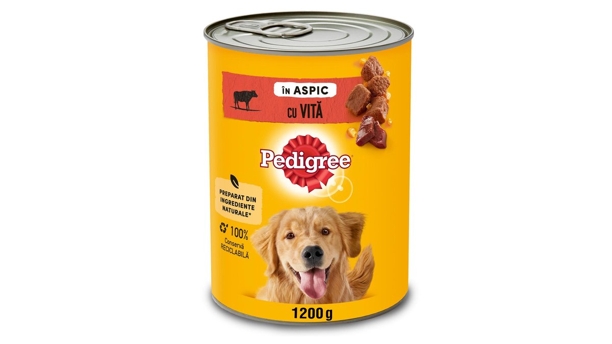 Pedigree hrana umeda la conserva pentru caini adulti cu bucati de vita in jeleu 1200g