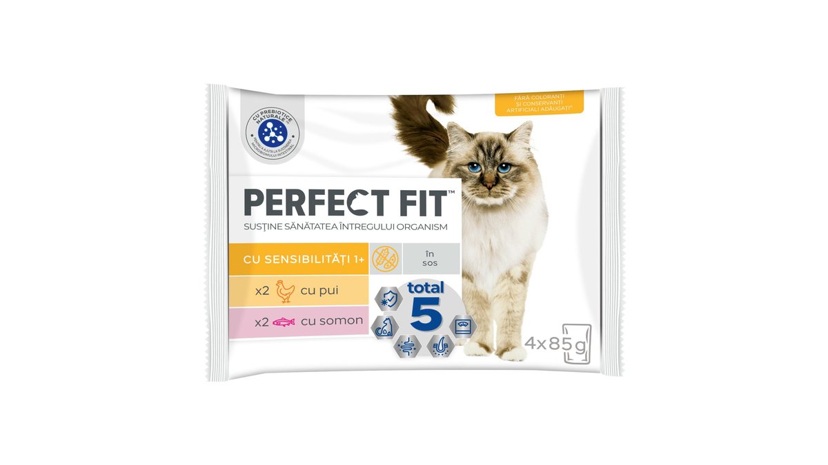 Perfect Fit Hrana Uscata Cu Pui Si Somon Pentru Pisici Sensibile Adulte 4 X 85 G