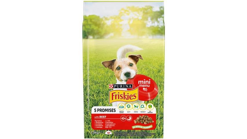 Friskies Adult mini meniu cu vita, hrana uscata pentru caini, 1.5kg