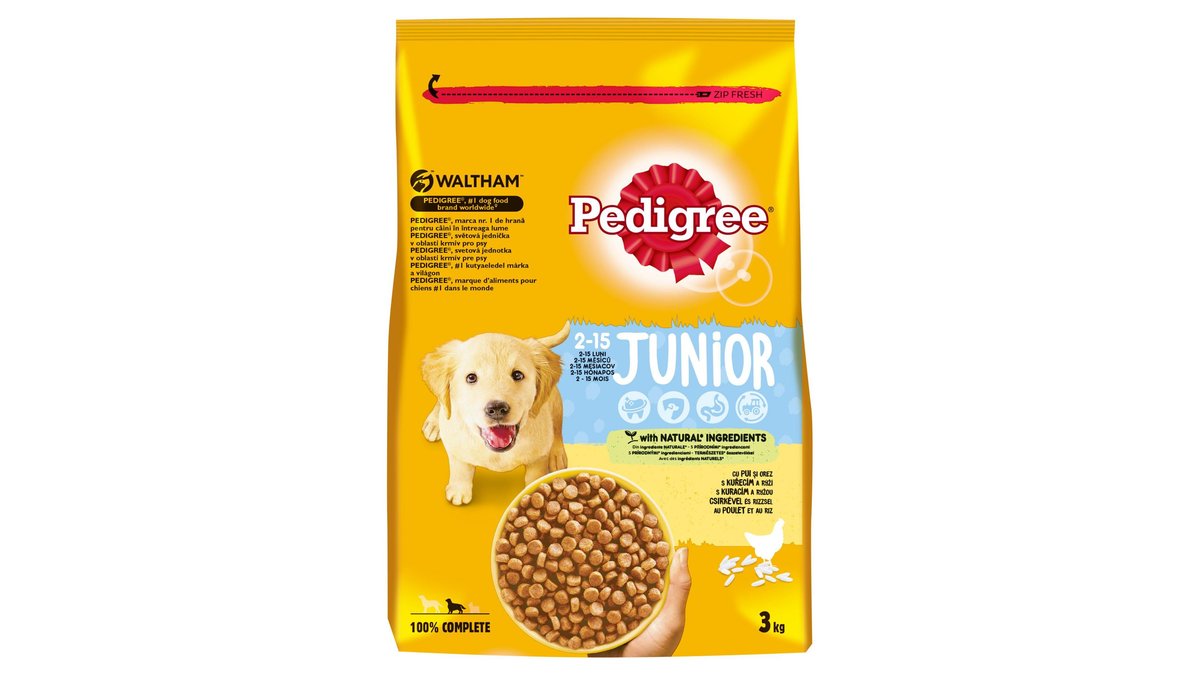 Pedigree hrana uscata pentru caini juniori, cu pui si orez 3kg