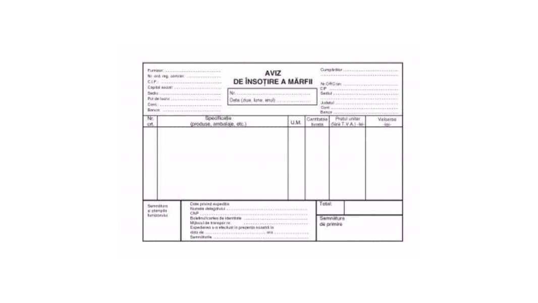 Aviz de insotire a marfii, hartie autocopiativa, format A5