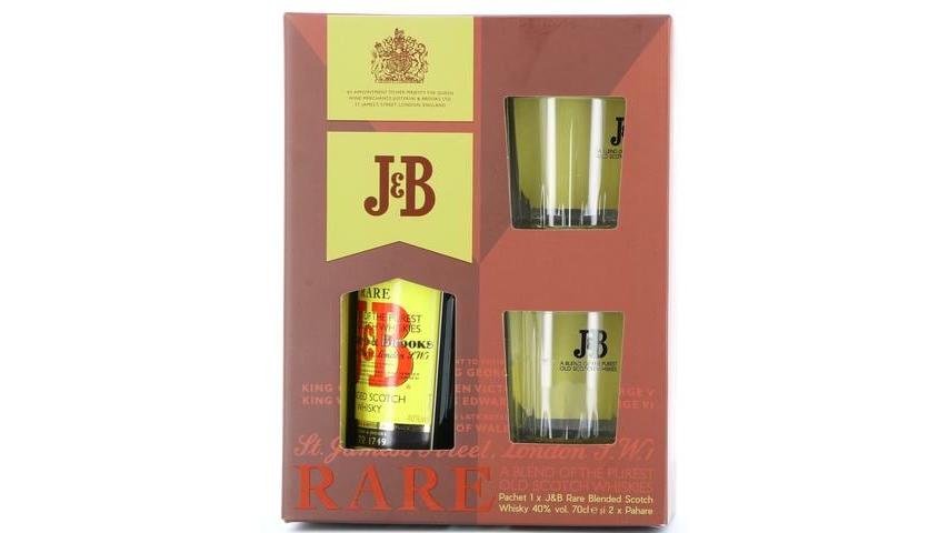 Pachet Whisky J&B Rare 40%, 0.7L + 2 Pahare