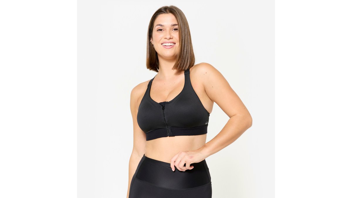 Bustieră cu fermoar și bureți Fitness cardio susținere mare Negru Damă