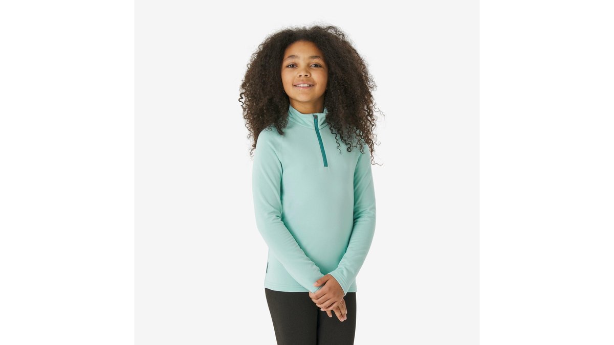 Bluză termică schi BL 500 fermoar scurt Turcoaz Copii