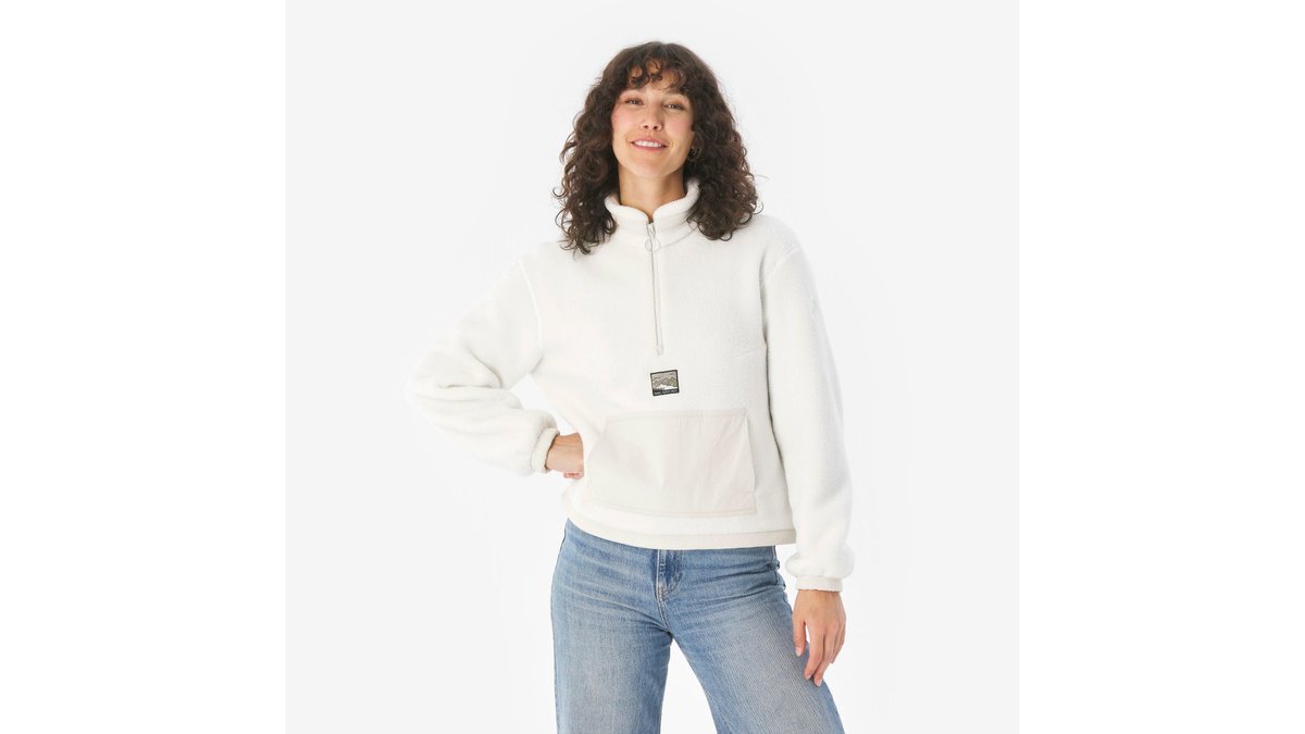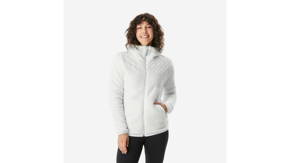 Polar lung cu fermoar Drumeție la munte MH500 Alb Damă