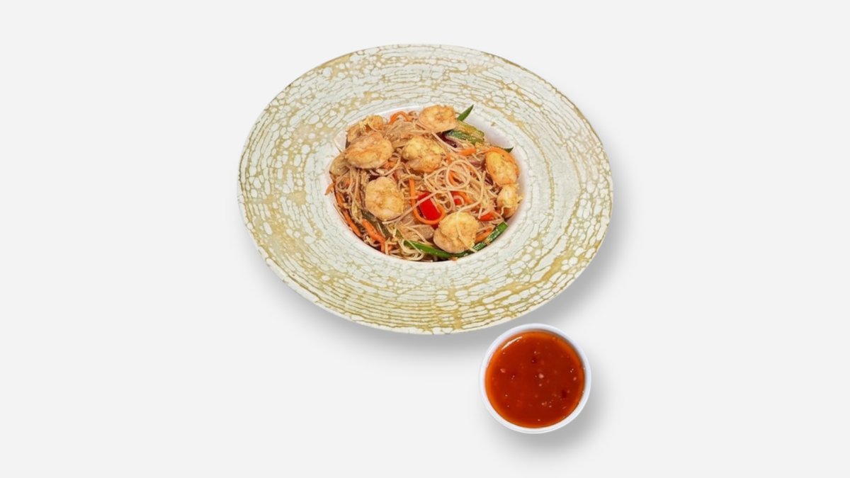 Noodles, creveți , ardei kapia, castravete, morcov, soya, sos sweet chilly, ceapă